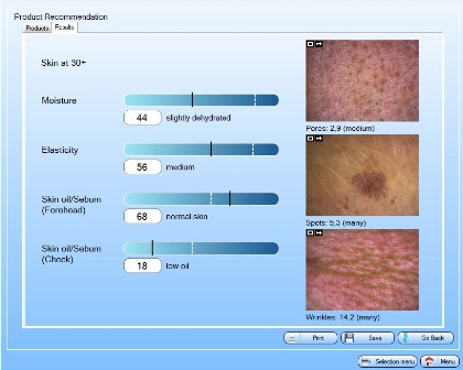 Determine o tipo de pele a partir das medições e um questionário, permitindo emitir um relatório com os resultados e a recomendação de produtos e/ou tratamentos.